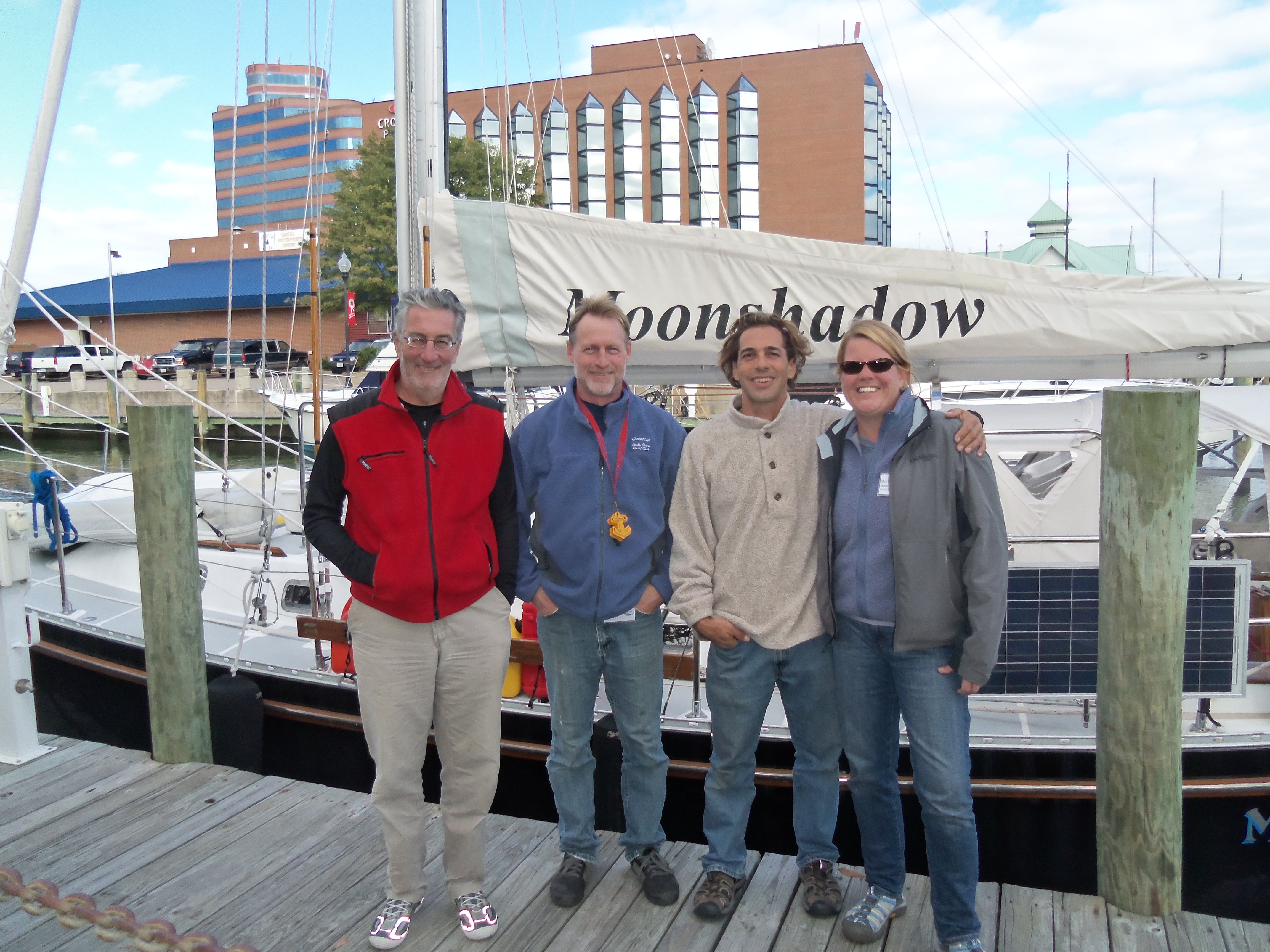 Moonshadow is a Tayana, Vancouver 42 foot sailboat. She is a semi-custom yacht with a haul number of 145. She draws 6 foot and weighs about 36,000 pounds. She has a shower, refrigeration, freezer, 3 burner stove, water maker, generator, auto pilot, solar panels, wind generator, plus much more to have a comfortable and safe passage.